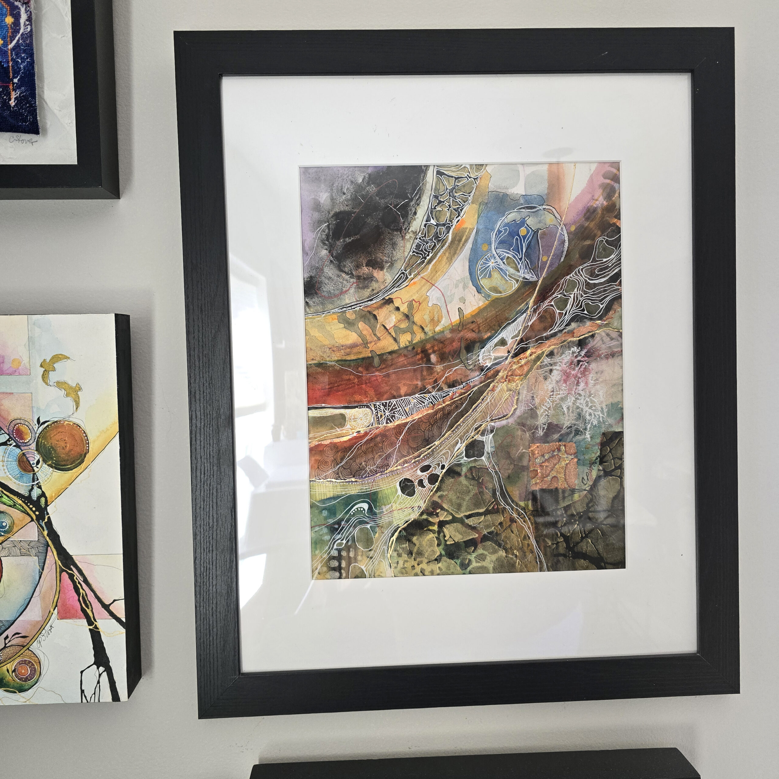 Original framed abstract watercolor and ink